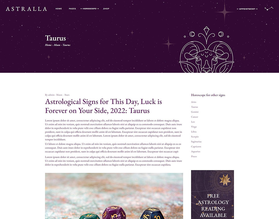 Astralla Truly majestic templates for those who have an interest in astrology, horoscope, natal chart reading, tarot & all things mystic!