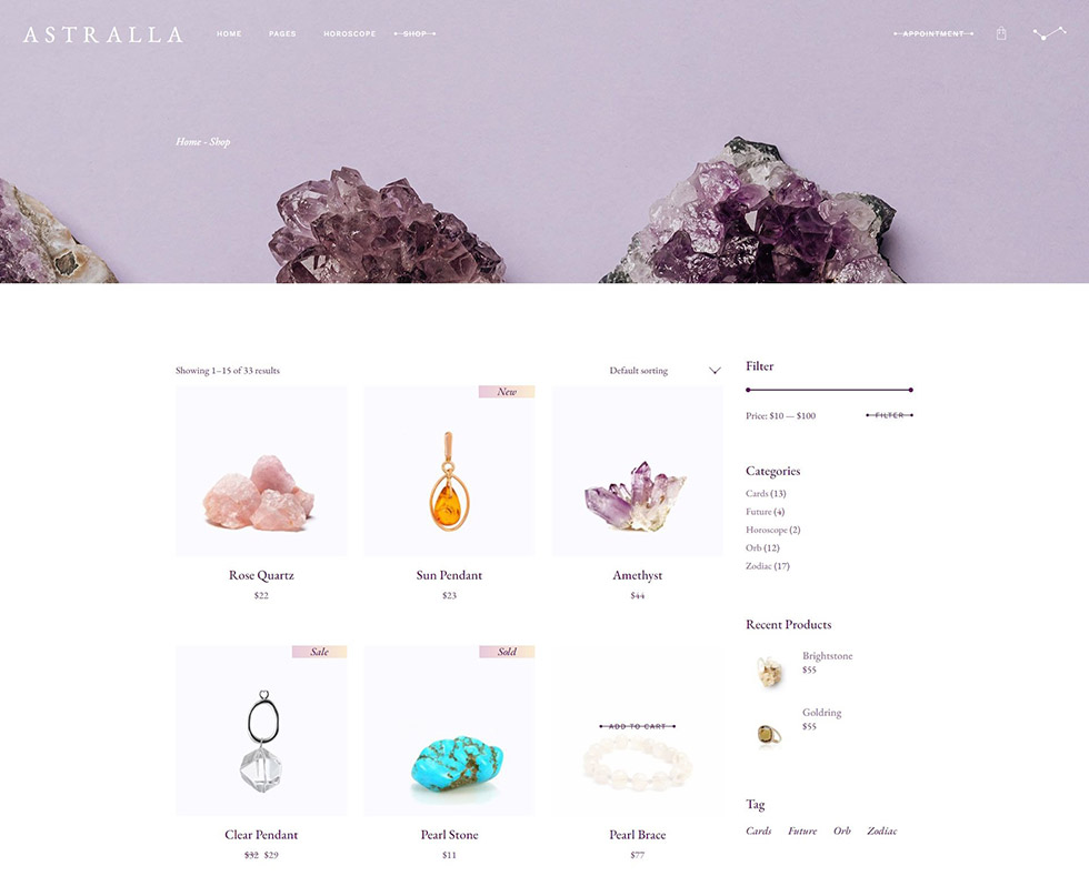 A shop website template that featuresseveral extraordinary product list andsingle layouts for your arcane trinkets.